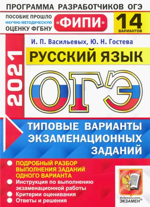 Пособия для подготовки к экзаменам: Русский языкЕсли вы обнаружили ошибку в описании товара «ОГЭ 2021 ФИПИ Русский язык. 14 вариантов. Типовые варианты экзаменационных заданий» (авторы: Гостева Юлия Николаевна, Васильевых Ирина Павловна), то выделите её мышкой и нажмите Ctrl+Enter. Спасибо, что помогаете нам стать лучше!