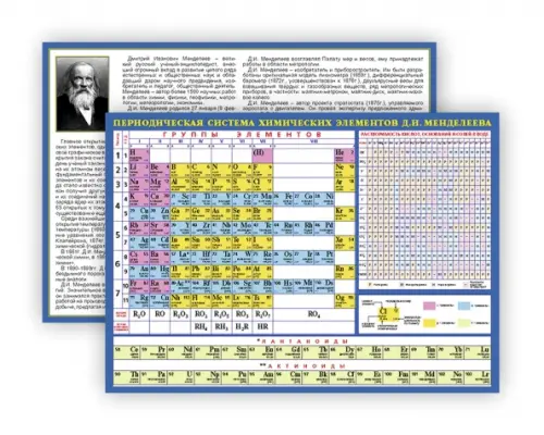 Таблица Менделеева. Планшетное издание Издание заламинировано с двух сторон. С оборотной стороны информация об Менделееве.