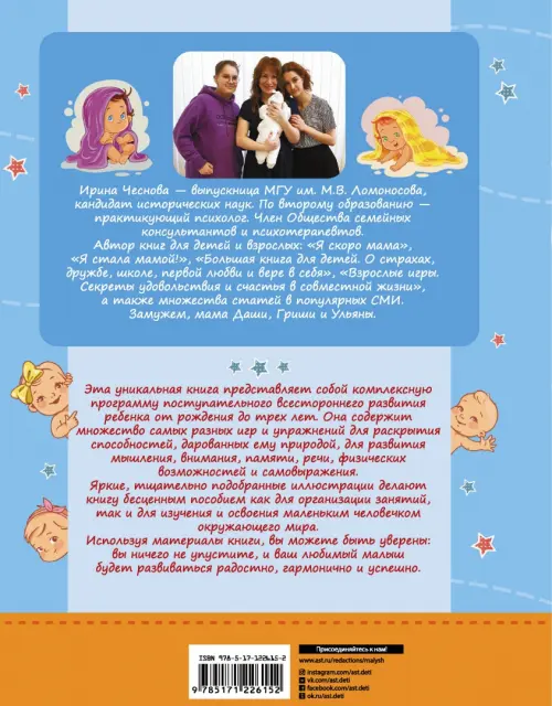 В первые годы жизни мозг маленького человека развивается колоссальными темпами. Важно не упустить момент и создать вокруг ребенка благоприятную среду для его гармоничного взросления и раскрытия способностей, дарованных природой. Книга опытного психолога, члена Общества семейных консультантов и психотерапевтов Ирины Чесновой содержит множество идей, игр и упражнений, которые помогут вам заниматься с малышом с первых дней его жизни и наполнить общение с ним взаимной радостью и удовольствием. Все вместе эти занятия составляют продуманную программу поступательного, комплексного развития ребенка от рождения до трех лет. Они заложат прочный фундамент для формирования хорошей памяти, устойчивого внимания, гибкого мышления и грамотной речи, чтобы малыш рос здоровым, смышленым, уверенным в своих силах и готовым решать сложные задачи, которые встретятся ему в жизни.