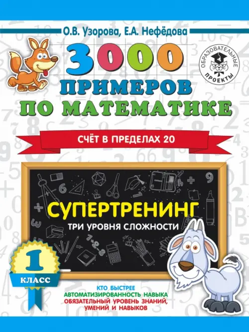 3000 примеров по математике. Супертренинг. Три уровня сложности. Счет в пределах 20. 1 класс