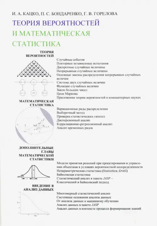 Рассмотрены основные вопросы теории вероятностей и математической статистики в соответствии с программой подготовки студентов, обучающихся в вузах. Для углубленного изучения курса приведены приложения теории вероятностей в компьютерных науках (computer science), а также отражены современные тенденции обработки данных, в известной мере опирающиеся на идеологию теории вероятностей и математической статистики, дан обзор ряда актуальных направлений (непараметрическая статистика, байесовская статистика, статистическая теория принятия решений, марковские цепи), современных направлений анализа данных (многомерный статистический анализ, статистическое обучение) в контексте