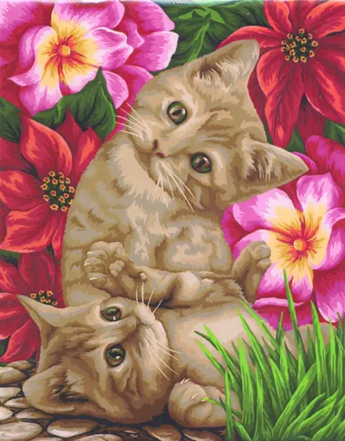 Процесс росписи прост. Рисунок разделён на множество мелких фрагментов, на каждом указано число. Оно соответствует цвету, которым нужно заполнить данный участок. В набор входят все необходимые оттенки красок.