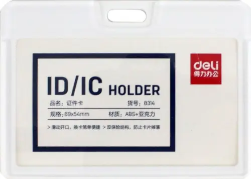 Бейдж горизонтальный для пропуска "Deli", цвет: белый, 54х89 мм, арт. 8314white