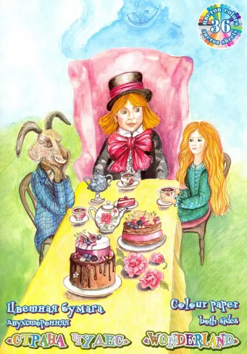 Набор цветной двусторонней бумаги "Страна чудес. Чаепитие", А4, 36 листов, 36 цветов