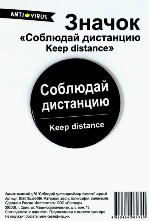 Если вы обнаружили ошибку в описании товара «Значок закатной "Соблюдай дистанцию/Keep distance", 56 мм, черный», то выделите её мышкой и нажмите Ctrl+Enter. Спасибо, что помогаете нам стать лучше!