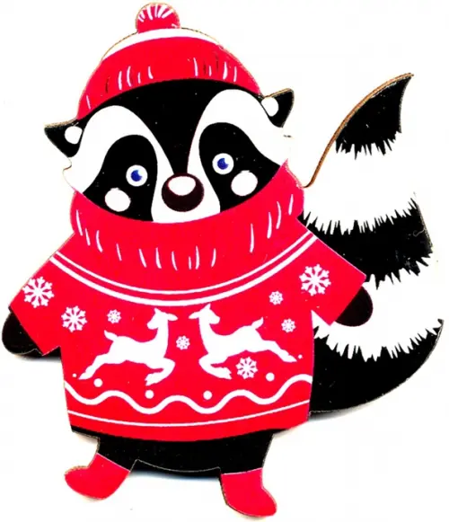 Магнит деревянный "Енот в свитере", 60х70 мм