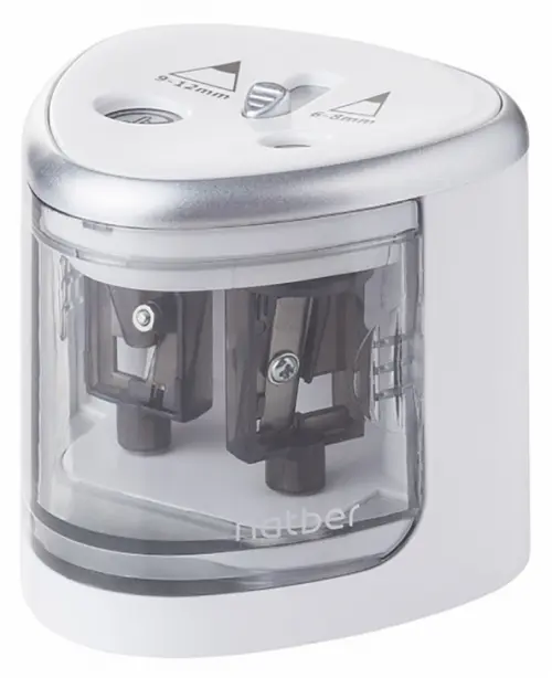 Точилка электрическая с 2-мя отверстиями - незаменимый атрибут рабочего стола. Позволяет затачивать цветные и чернографитовые карандаши двух диаметров: стандартные карандаши диаметром 6-8 мм и утолщённые карандаши диаметром 9-12 мм. Имеет легко очищающийся резервуар для стружки и противоскользящие опорные ножки.
