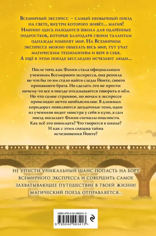 Став официальным учеником Всемирного экспресса, Флинн надеялась, что наконец сможет найти своего брата Йонте, который исчез в поезде несколько лет назад. Но оказалось, что отыскать его следы совсем не просто. Ученики и учителя упорно отказываются говорить о нём. Но самое странное, что по ночам в поезде начинают происходить необъяснимые вещи: в коридорах появляются жуткие тени, один из учеников видит монстра, а сама Флинн постоянно получает от поезда скрытые сигналы опасности. Так что же творится во Всемирном экспрессе? Кто пытается принести вред ему и его пассажирам? И главное — как всё это связано с тайной Йонте? Вторая книга серии.