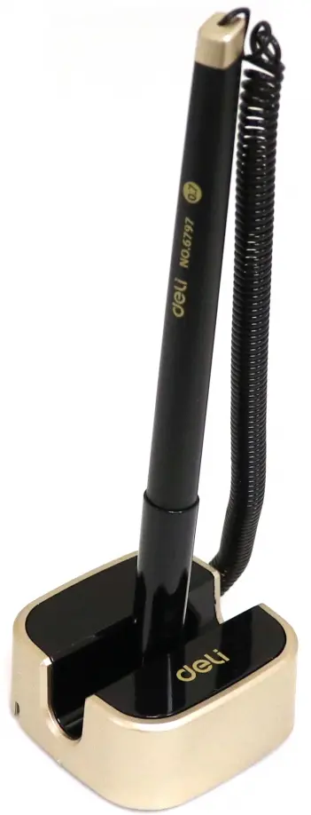 Ручка гелевая "Deli", цвет: черный, на подставке 0,7 мм, синие чернила, арт. E6797blue