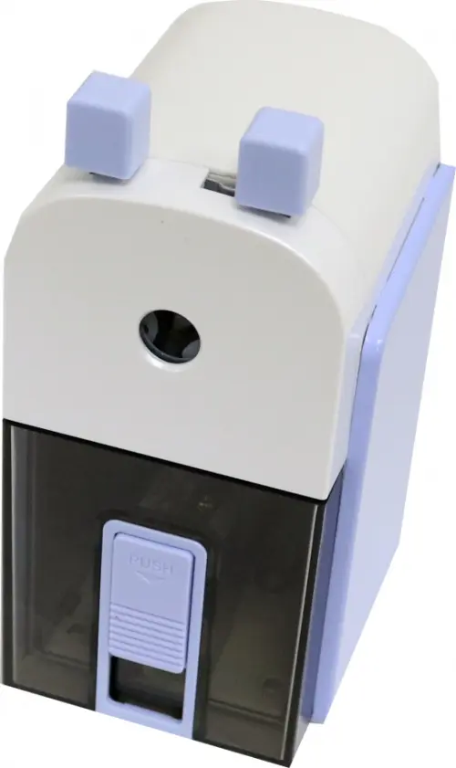 Точилка механическая для треугольных, круглых, шестигранных карандашей. Диаметр отверстия 8 мм, нескользящее основание, голубого цвета.