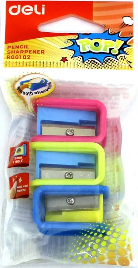 Точилка для карандашей ручная Deli "PoP", цвет: ассорти, 1 отверстие, 3 штуки, арт. ER00102