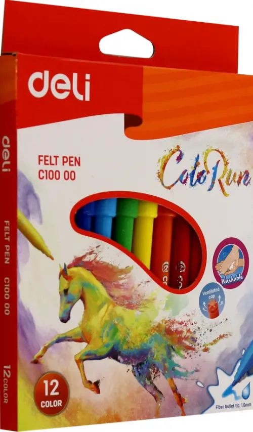 Фломастеры Deli "ColoRun", круглый пишущий наконечник, смываемые, 12 цветов