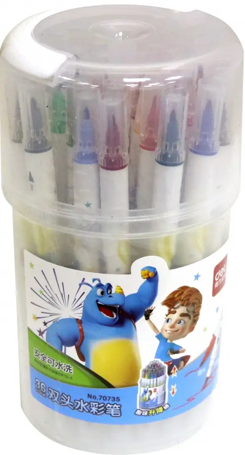 Фломастеры "Deli", двойной пишущий наконечник, смываемые, 36 цветов