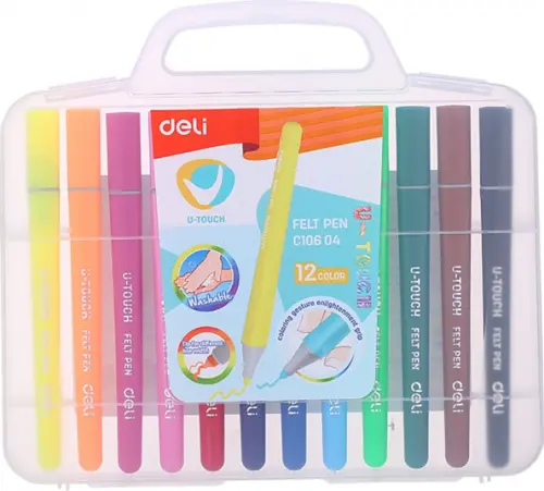 Фломастеры Deli "U-touch", вентилируемые, смываемые, 12 цветов