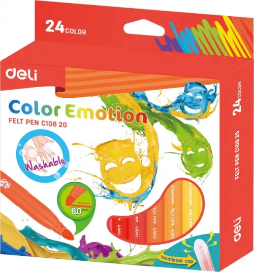 Фломастеры Deli "Color Emotion", вентилируемые, смываемые, 24 цвета