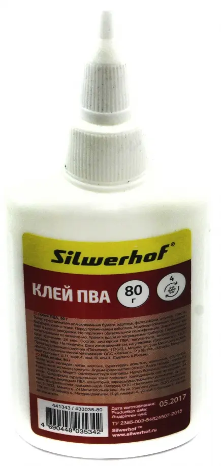 Клей ПВА "Silwerhof", 80 мл, арт. 433035-80