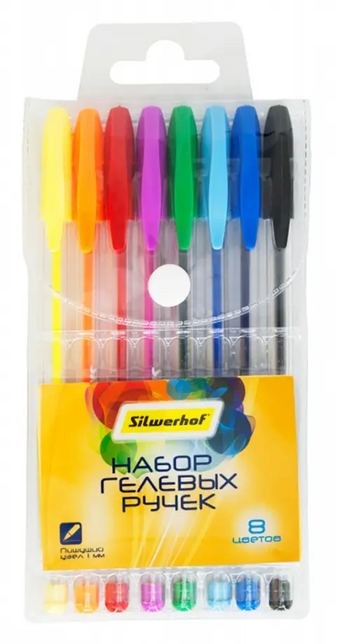Набор гелевых ручек Silwerhof включает в себя 8 ярких цветов. Ручки имеют прозрачный круглый корпус из пластика, благодаря чему хорошо видны яркие чернила, а клип на колпачке соответствует цвету чернил. Диаметр пишущего узла - 1 мм, что оптимально для письма, рисования и даже для раскрашивания. С такими инструментами заняться творчеством захотят и дети, и взрослые.