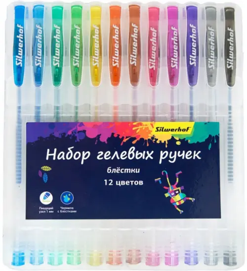 Набор гелевых ручек Silwerhof "Цветландия. Блестки", 1 мм, 12 цветов