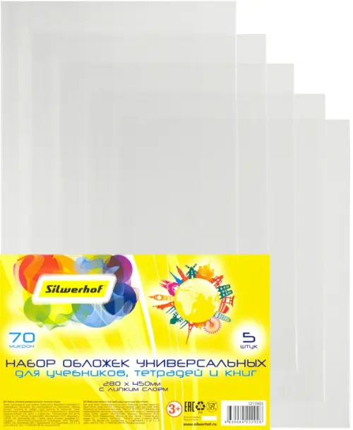 Дети используют школьные дневники, тетради и учебники каждый день, носят их в рюкзаках, перекладывают, часто роняют и могут легко испачкать. Чтобы сохранить аккуратный внешний вид книг и тетрадей как можно дольше – удобно использовать новые обложки Silwerhof. Обложки изготовлены из ПП плотностью от 50 до 100 мкм – каждый сможет выбрать комплект обложек по своим требованиям. Независимо от плотности, обложки надежно защищают тетради и учебники от внешних механических повреждений. Благодаря высокой прозрачности, обложки обеспечивают хорошую видимость переплета. Таким образом, ребенок всегда сможет быстро найти нужную книгу или тетрадь. Липкий слой по одному краю обложки позволяет подогнать обложку практически под любой учебник или рабочую тетрадь.