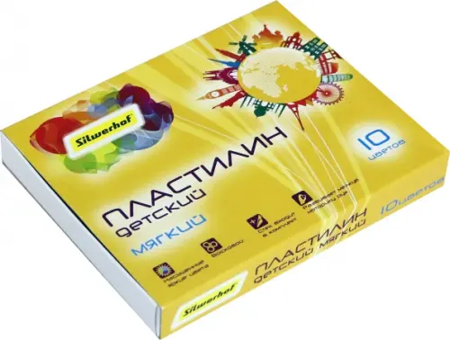 Пластилин - распространённый материал для детского творчества. Работа с ним позволяет развивать мелкую моторику рук и творческие навыки ребенка. Пластилин Silwerhof не засыхает на воздухе, не крошится, не оставляет жирных цветов, хорошо разминается и легко отчищается после использования. Добавление натурального воска в пластилин делает его еще более пластичным и облегчает работу с ним маленьким скульпторам. Цвета легко смешиваются между собой, а для точного отделения кусочка необходимого размера от бруска в набор входит стек. В наборе 10 брусков по 15 грамм, в плотной картонной подложке.