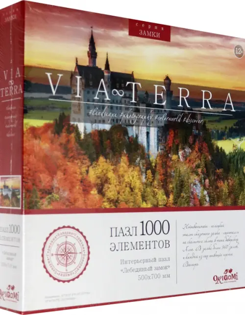 Пазл "Лебединый замок" - это интерьерный пазл, входящий в новую серию Via Terra. Красочные фотографии, взятые за основу серии, захочется собрать и взрослым и детям, а также пазл является отличным украшением любого интерьера! На каждой упаковке можно найти уникальное описание места, изображенного на ней.