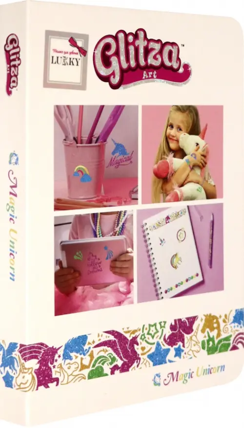 Уникальные тату от Glitza Art Lukky, для которых не нужны ни вода, ни утюг, ни клей. Просто прижми, переведи и смахни! Просто добавь блёсток и создай настоящую магию! Новая потрясающая возможность попробовать создать свой неповторимый стиль. Множество единорогов на любой вкус, которых можно разместить не только на твоей коже, но и почти на любой поверхности вокруг. Пусть единорогов и не существует, у тебя будет такой, и не один! Очень мелкие, но яркие блестки отлично подчеркнут твоё исключительное чувство стиля, будут блестеть даже под водой и держаться до 5 дней. В набор входит 4 листа с клейкими дизайнами, 3 баночки с блестками (зеленого, розового и голубого цветов) по 1 г, цветная фольга, 2 кисточки. А при необходимости тату легко смоются водой и мылом.