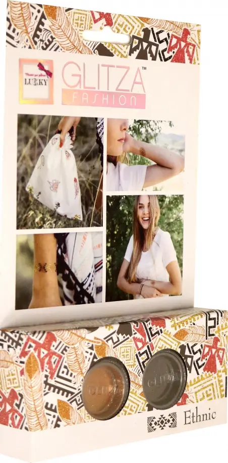 Уникальные тату от Glitza Fashion Lukky, для которых не нужны ни вода, ни утюг, ни клей. Просто прижми, переведи и смахни! Просто добавь блёсток! Новая потрясающая возможность попробовать воплотить в жизнь свой неповторимый стиль. 2 листа дизайнов, сочетающих в себе традиции и современность, которые можно разместить не только на твоей коже, но и почти на любой поверхности вокруг. Очень мелкие, но яркие блестки отлично подчеркнут твоё исключительное чувство стиля, будут блестеть даже под водой и держаться до 5 дней. В набор входит 2 листа с клейкими дизайнами, 2 баночки с блестками (черного и оранжевого цветов) по 1 г и двусторонняя кисточка. А при необходимости тату легко смоются водой и мылом.