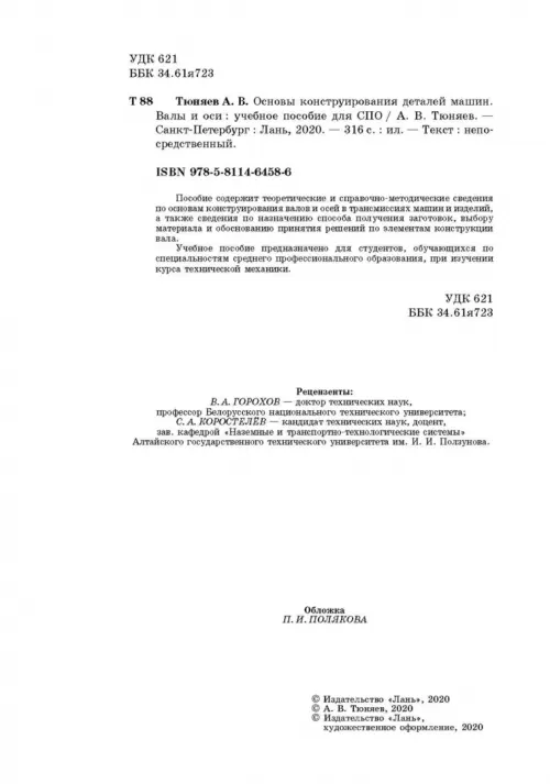 Если вы обнаружили ошибку в описании товара «Основы конструирования деталей машин. Валы и оси. Учебное пособие. СПО» (авторы: Тюняев Анатолий Васильевич), то выделите её мышкой и нажмите Ctrl+Enter. Спасибо, что помогаете нам стать лучше!