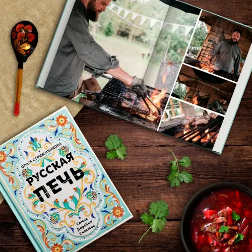 Книга фермера и фуд-блогера Ольги Стрижибиковой "Русская печь" знакомит нас с одной из самых актуальных экотрадиций. Чем хороша печная кулинария? Своей простотой. Не нужны ни специальные знания, ни владение особыми технологиями. Печь все делает сама. Для того, чтобы готовить, обязателен только один навык: уметь ее топить. Технология приготовления еды в модном су-виде и печи похожи: томление при невысоких температурах с максимальным сохранением пользы и вкуса. Приготовление в печи процесс долгий, но совершенно не требующий постоянного вашего присутствия. Он для ленивых: пока печь топится, подготовить ингредиенты, потом убрать в печь и почитать книгу в саду или лечь спать. Чтобы через несколько часов или утром получить ароматный пряный суп-пюре из моркови или гречневую кашу с грибами прямо с пылу с жару. Вы будете удивлены, но в русской печи можно приготовить как блюда актуальной кухни — например, ростбиф или конфи из утки, — так и деревенские специалитеты типа бульона из петуха с пирожками с брынзой или зельца из свиных голов. Любители здорового питания откроют для себя ассорти из запеченных корнеплодов, суп-пюре из кабачков с мятой и кресс-салатом и песто из чесночных стрелок. А если вы еще не обзавелись печью, все эти блюда можно готовить и в обычной бытовой духовке!