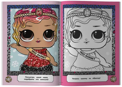 На каждой страничке вы найдёте готовые иллюстрации и их чёрно-белые копии для раскрашивания. Крошки L.O.L. Surprise! научат, как внимательно и правильно выбирать цвета, или, включив воображение, создавать свои новые уникальные рисунки.
