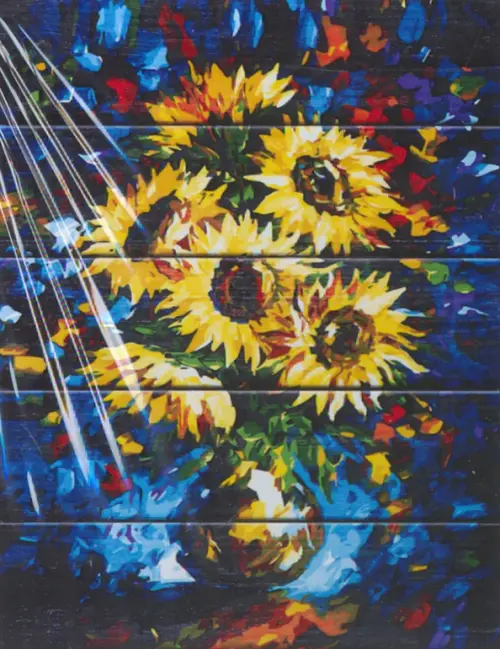 Картины по номерам по дереву. Букет подсолнухов, 40x50 см