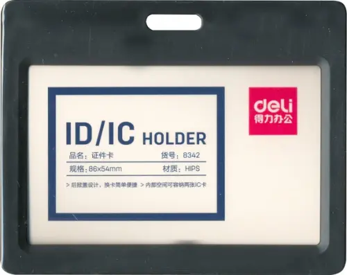 Бейдж для пропуска "Deli", цвет: серый, горизонтальный, 54х90 мм, арт. 8342GRAY