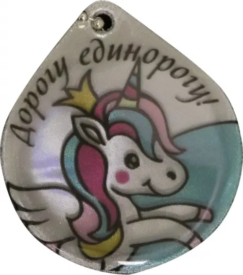 Брелок светоотражающий "Капля. Дорогу единорогу!", 48х56 мм