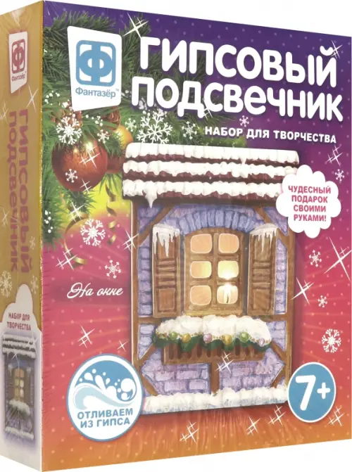 В наборе: гипс, формы для заливки, кисть, акриловый лак, блестки, свеча, пластиковый стек, наждачная бумага, инструкция.