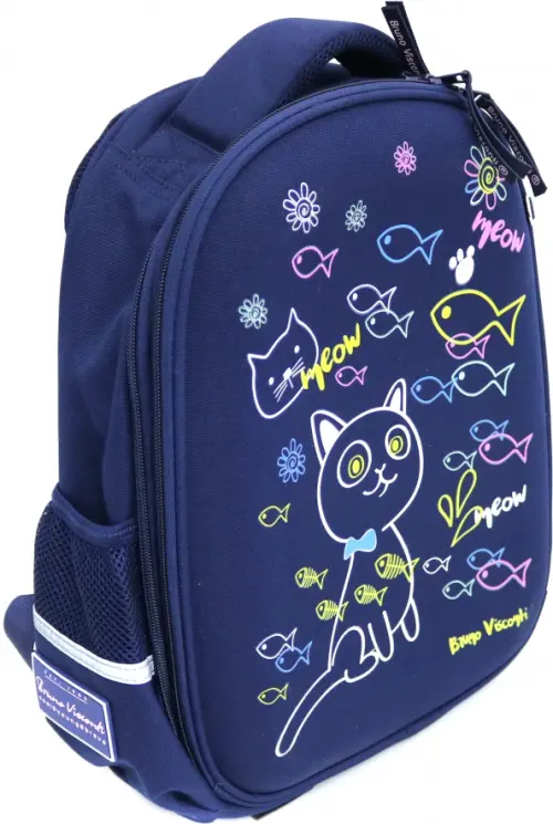 Рюкзак с авторским дизайном, с использованием сложнейших современных технологий нанесения на ткань. Ткань водонепроницаемая, морозостойкая, с повышенной износостойкостью, грязеотталкивающая. Двунаправленные-реверсивные надежные 8-мм молнии с 5-см пуллером на замках, что позволяет легко открывать и закрывать рюкзак. Эргономичная спинка, комфортная при длительном использовании, вентилируемая, с анатомическими подушечками. Регулируемые лямки анатомической формы и ручка с усиленным креплением готовы к любым нагрузкам. Износостойкая фирменная подкладка Bruno Visconti, тщательно подобранная и сочетающаяся с дизайном и цветом рюкзака. Рюкзак имеет два основных отделения: первое отделение содержит органайзер с молнией и карман-сеточку, второе отделение состоит из трех частей с двумя разделителями с фиксирующим ремнем и дополнено карманом на молнии для карточки. Рюкзак снабжён четырьмя светоотражающими элементами. Усиленное дно рюкзака оснащено резиновыми ножками, защищающими от загрязнения и влаги.