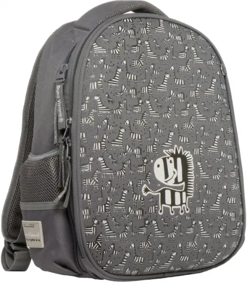 Рюкзак с авторским дизайном, с использованием сложнейших современных технологий нанесения на ткань. Ткань водонепроницаемая, морозостойкая, с повышенной износостойкостью, грязеотталкивающая. Двунаправленные-реверсивные надежные 8-мм молнии с 5-см пуллером на замках, что позволяет легко открывать и закрывать рюкзак. Эргономичная спинка, комфортная при длительном использовании, вентилируемая, с анатомическими подушечками. Регулируемые лямки анатомической формы и ручка с усиленным креплением готовы к любым нагрузкам. Износостойкая фирменная подкладка Bruno Visconti, тщательно подобранная и сочетающаяся с дизайном и цветом рюкзака. Рюкзак имеет два основных отделения: первое отделение содержит органайзер с молнией и карман-сеточку, второе отделение состоит из трех частей с двумя разделителями с фиксирующим ремнем и дополнено карманом на молнии для карточки. Рюкзак снабжён четырьмя светоотражающими элементами. Усиленное дно рюкзака оснащено резиновыми ножками, защищающими от загрязнения и влаги.