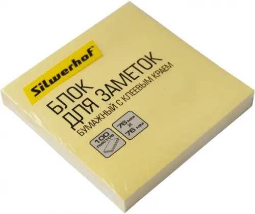 Блок самоклеящийся бумажный "Silwerhof", 76x76 мм, 100 листов, цвет: пастель желтый, арт. 682156-05