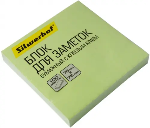 Блок самоклеящийся бумажный "Silwerhof", 76x76 мм, 100 листов, цвет: пастель зеленый, арт. 682156-06