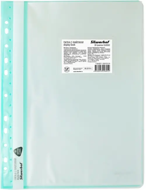Папка-скоросшиватель, 30 файлов-вкладышей светло-зеленого цвета, А4 формата. На корешке скоросшивателя есть перфорация для подшивки скоросшивателя в регистратор или папку с кольцами. Значительно облегчает систематизацию и работу с документами. Карман для визитки на лицевой стороне. Материал - первичный полипропилен, что обеспечивает равномерную и хорошую прозрачность вкладышей и прочность всего изделия.