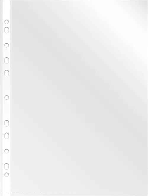 Папка-вкладыш премиум-качества с универсальной перфорацией используется для подшивки бумаг в архивные папки без перфорирования дыроколом. Формат: А4+. Изготовлены из высококачественной полипропиленовой пленки (толщина 100 мкм). Глянцевая прозрачная текстура поверхности. Каждый файл вмещает до 60 листов. В упаковке 25 штук.