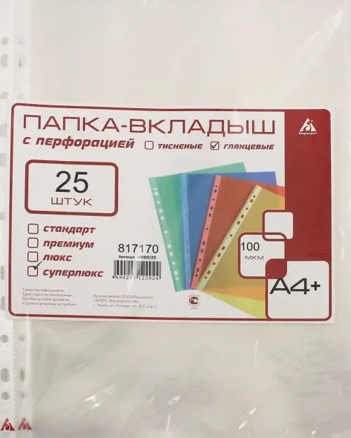 Если вы обнаружили ошибку в описании товара «Папка-вкладыш Бюрократ "СуперЛюкс", глянцевые, А4+, 25 штук, арт. -100G/25», то выделите её мышкой и нажмите Ctrl+Enter. Спасибо, что помогаете нам стать лучше!