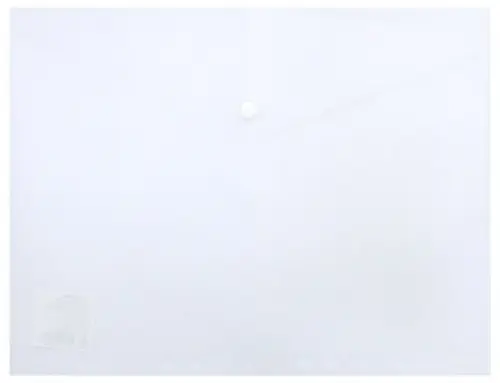 Прозрачный конверт на кнопке, горизонтальный, А4 формата, с перфорацией, что позволяет хранить конверт в папке с кольцами и облегчает систематизацию документов. Плотность пластика 180 мкрн.