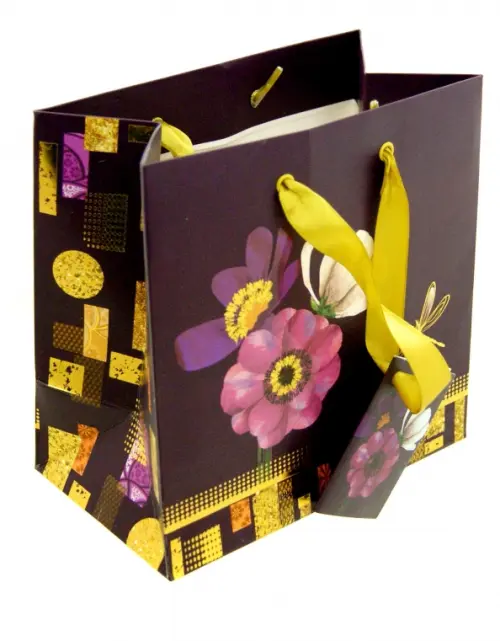 Пакет подарочный "Цветы" (16,5x16,5x9,2 см)