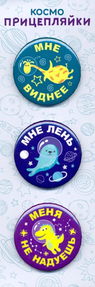 Значки закатные "Космо-прицепляйки", 38 мм, 3 штуки