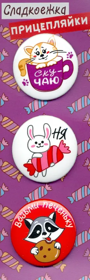 Если вы обнаружили ошибку в описании товара «Значки закатные "Прицепляйки. Сладкоежка", 38 мм, 3 штуки», то выделите её мышкой и нажмите Ctrl+Enter. Спасибо, что помогаете нам стать лучше!