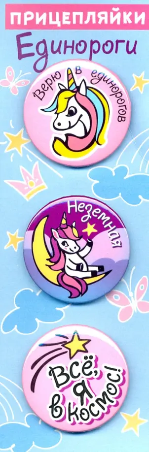 Если вы обнаружили ошибку в описании товара «Значки закатные "Прицепляйки. Единороги", 38 мм, 3 штуки», то выделите её мышкой и нажмите Ctrl+Enter. Спасибо, что помогаете нам стать лучше!