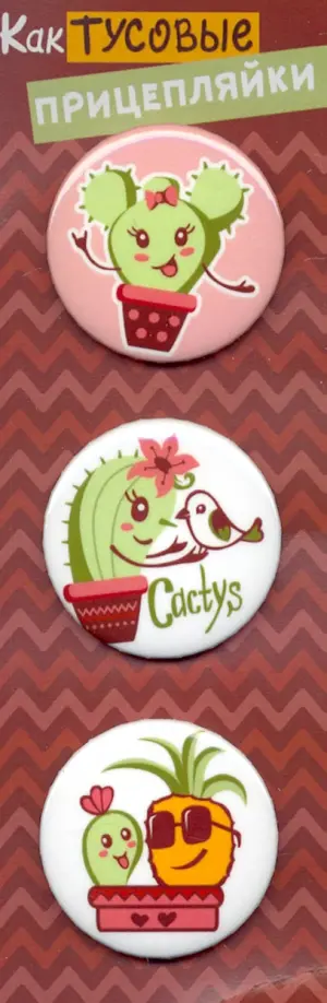 Значки закатные "Прицепляйки. КакТУСОВЫЕ", 38 мм, 3 штуки