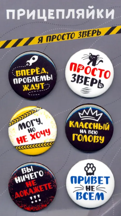 Значки закатные "Прицепляйки. Я просто зверь", 38 мм, 6 штук