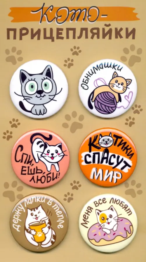 Значки закатные "Кото-прицепляйки", 38 мм, 6 штук