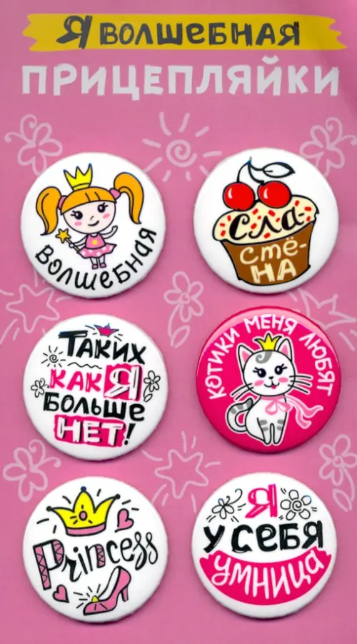 Значки закатные "Прицепляйки. Я волшебная", 38 мм, 6 штук